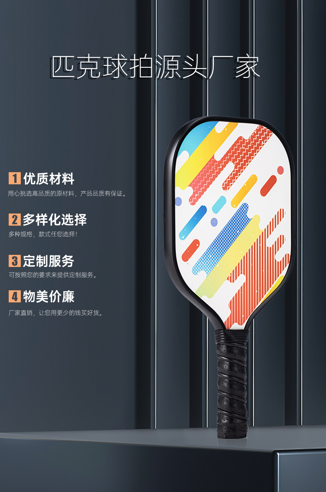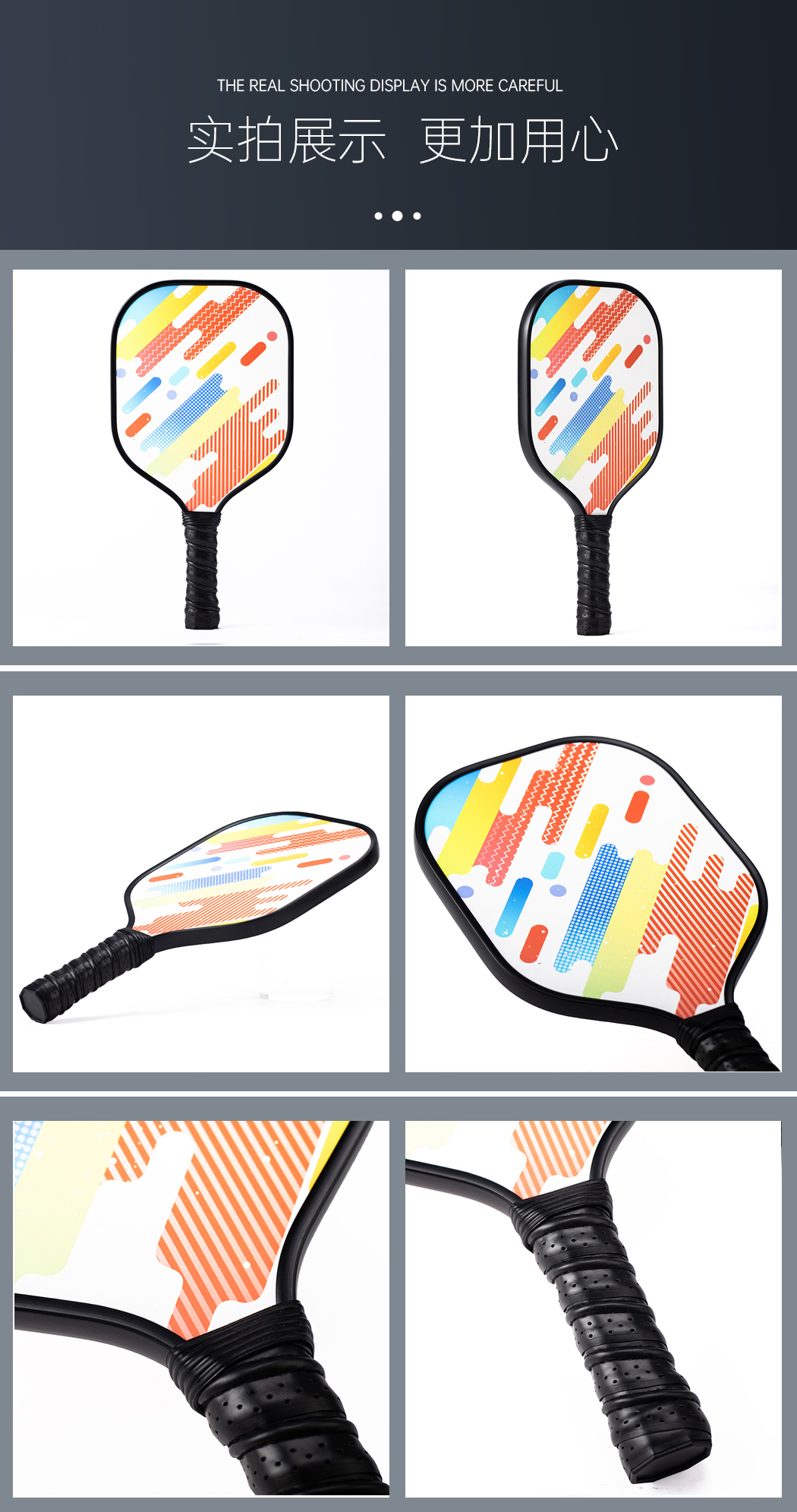 • Finished glass fiber+frosted+PP honeycomb Pickleball Paddle customization