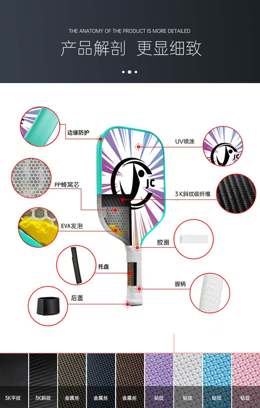 Finished glass fiber+frosted+PP honeycomb Pickleball Paddle customization